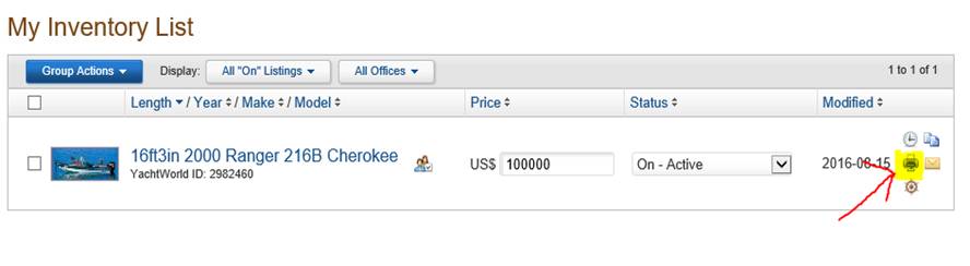 4. To the right of the listing information, you will see a number of icons, if you click on the icon that looks like a printer (print icon)